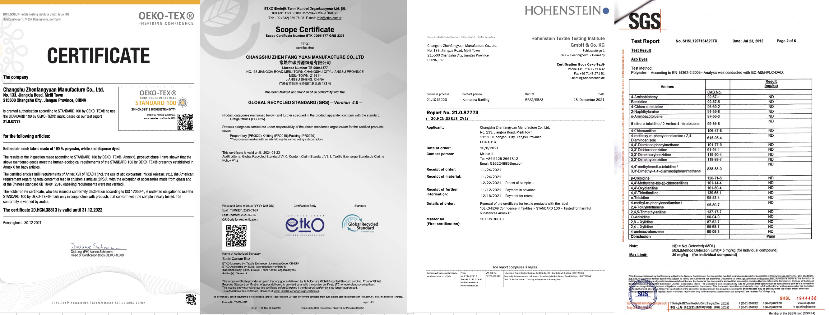 our 3d mesh fabric passed the SGS test and also qualified by Oeko-tex & Global Recycled Standard.