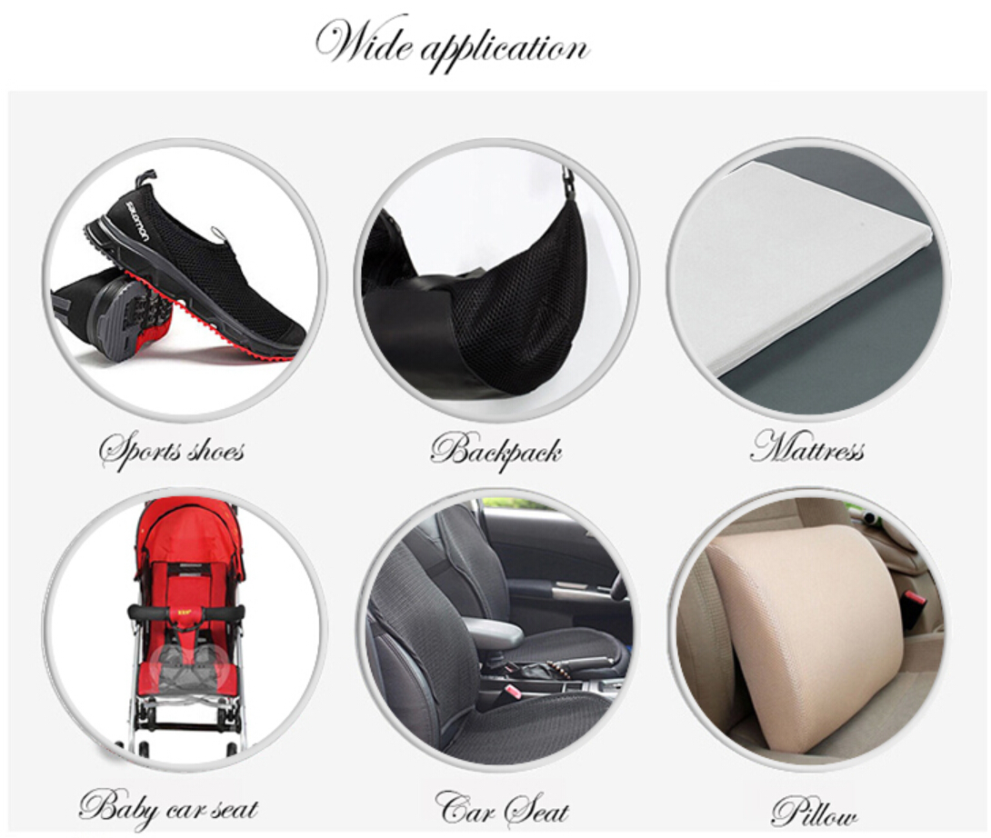 Widely Used: Sports shoes, bags, hat, office chair, slippers,T-shirt,sofa,mattress, gloves and staff